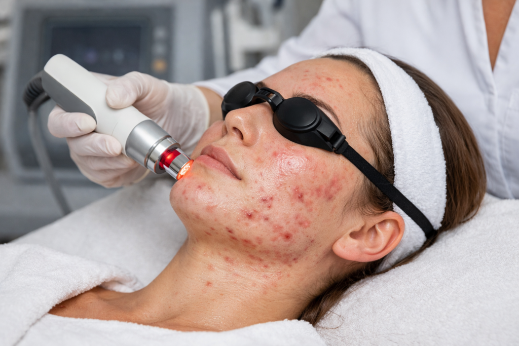Blue light therapy and blue light treatments are often discussed for acne because blue wavelengths can target acne-associated bacteria at the skin’s surface. These approaches can be appealing because they’re generally less invasive than deeper procedures. However, they may be more helpful for certain acne patterns than others, and they don’t replace a full plan when acne is hormonal, cystic, or persistent.