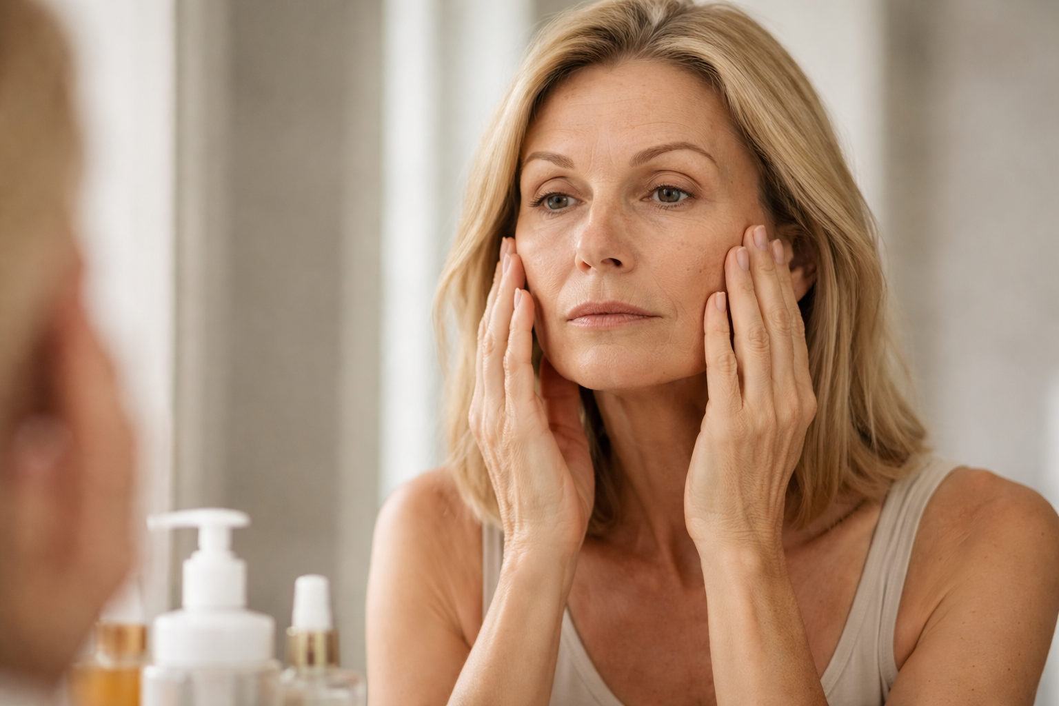 While collagen is not the same as moisture, it plays an important role in how supported and plump the skin appears. Declining collagen can contribute to reduced facial volume and make the skin look flatter or more hollow in certain areas.